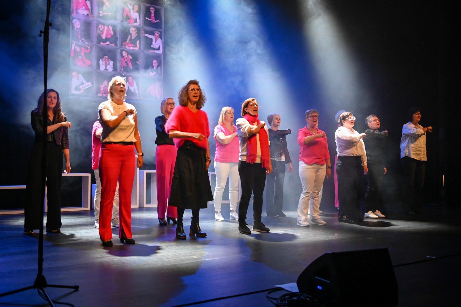 Wij zijn een modern popkoor, bestaande uit 16 enthousiaste dames die leuke popcovers brengen op een vlotte en eigentijdse manier. We zingen bij voorkeur Engelstalige recente popmuziek, soms afgewisseld met een oudere klassieker.